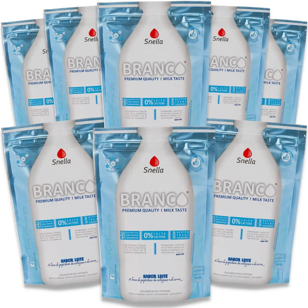 Branco® é à base de peptídeos de Colágeno e peptídeos de arroz, um alimento inovador, alternativa completa e muito saborosa para todas as pessoas que não podem ou não querem consumir o leite convencional. Feito somente com ingredientes saudáveis, certificados, da melhor qualidade e tecnologia, livre de metais pesados e outros contaminantes. Traz um equilíbrio nutricional e sensorial que recria o gosto e a nutrição do leite convencional, sem ter nenhuma origem láctea e nem açúcar (sacarose), colesterol, adição de conservantes. Uma formulação nutricional poderosa para a saúde intestinal e imune, em forma de “leite” (como leite em pó)!